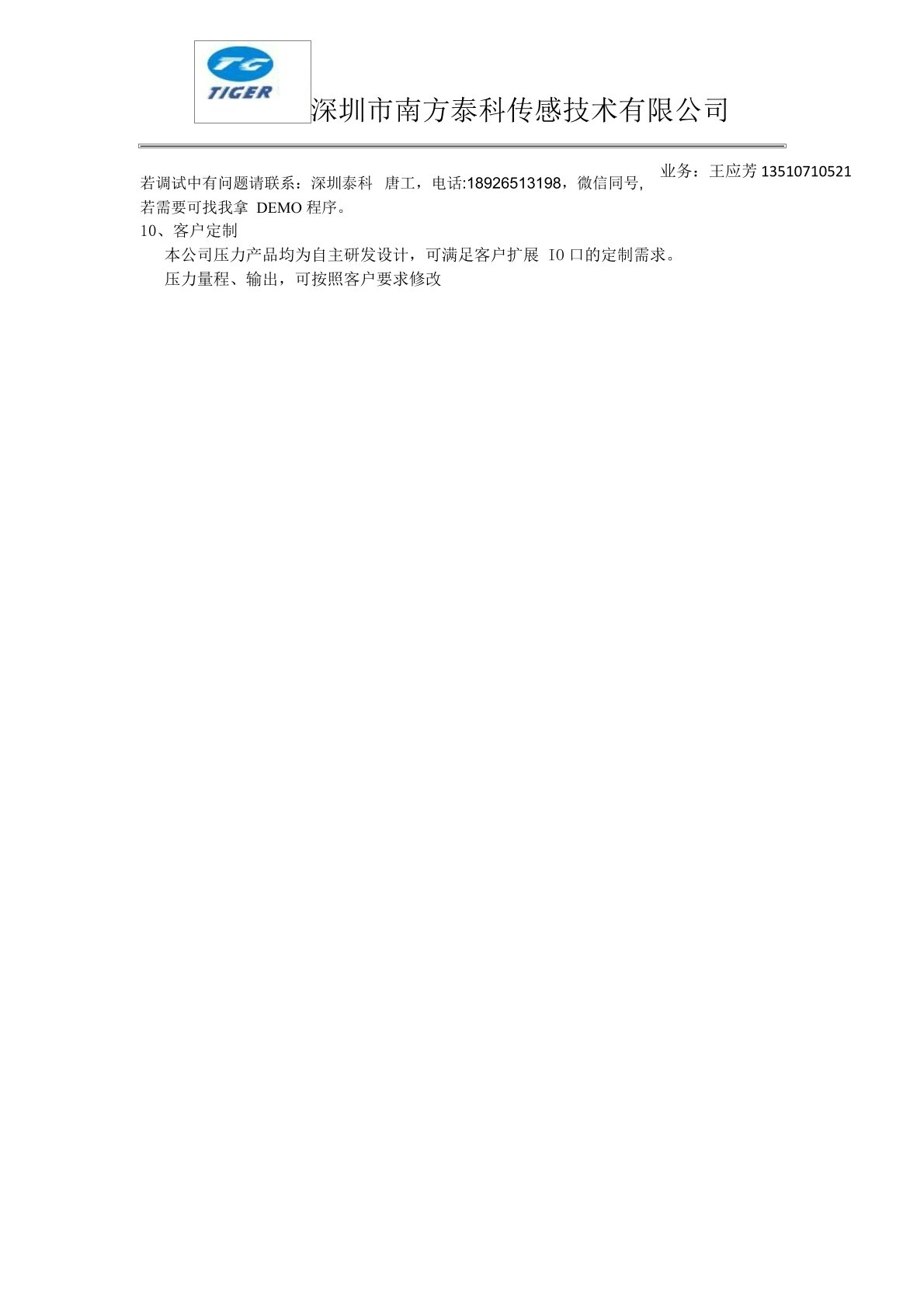 1.2产品特点 MEMS技术 表压形式 SOP8带气嘴封装形式 防潮和防油 高精度扩散硅压力传感芯片 测量范围:-100KPa~0KPa~5KPa~700KPa,可定制 供电范围:3.0~5.5V 输出方式选择:标准电压输出,或比例电压输出