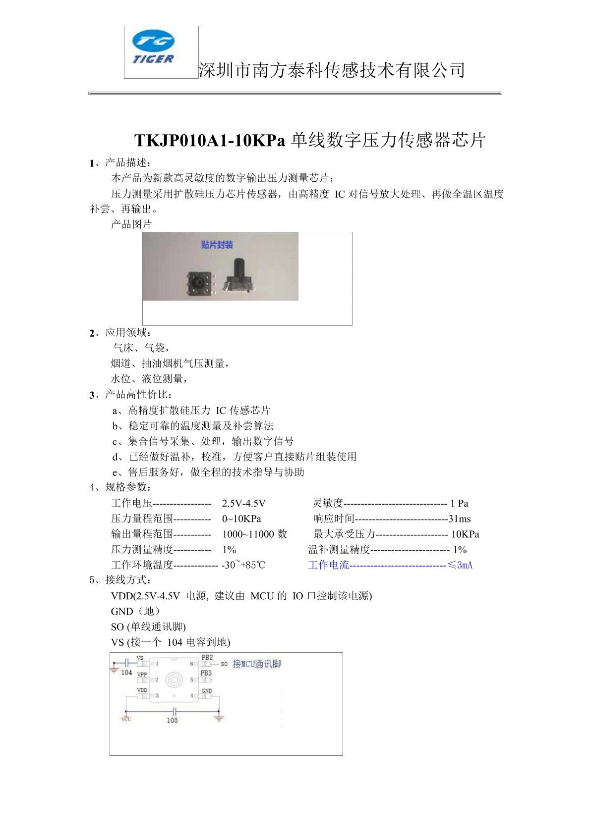 TKJPxxx系列压力传感器为高灵敏度的智能型数字输出压力传感器芯片