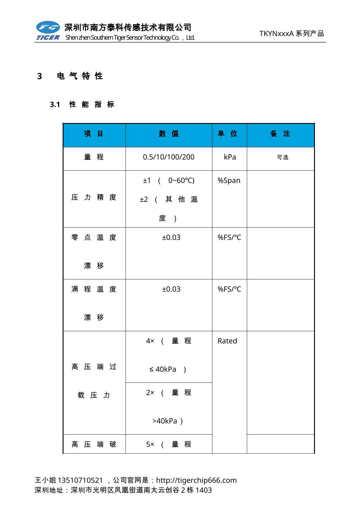 TKVNxxxA系列压力传感器为高灵敏度的标准电压输出型压力传感器芯片