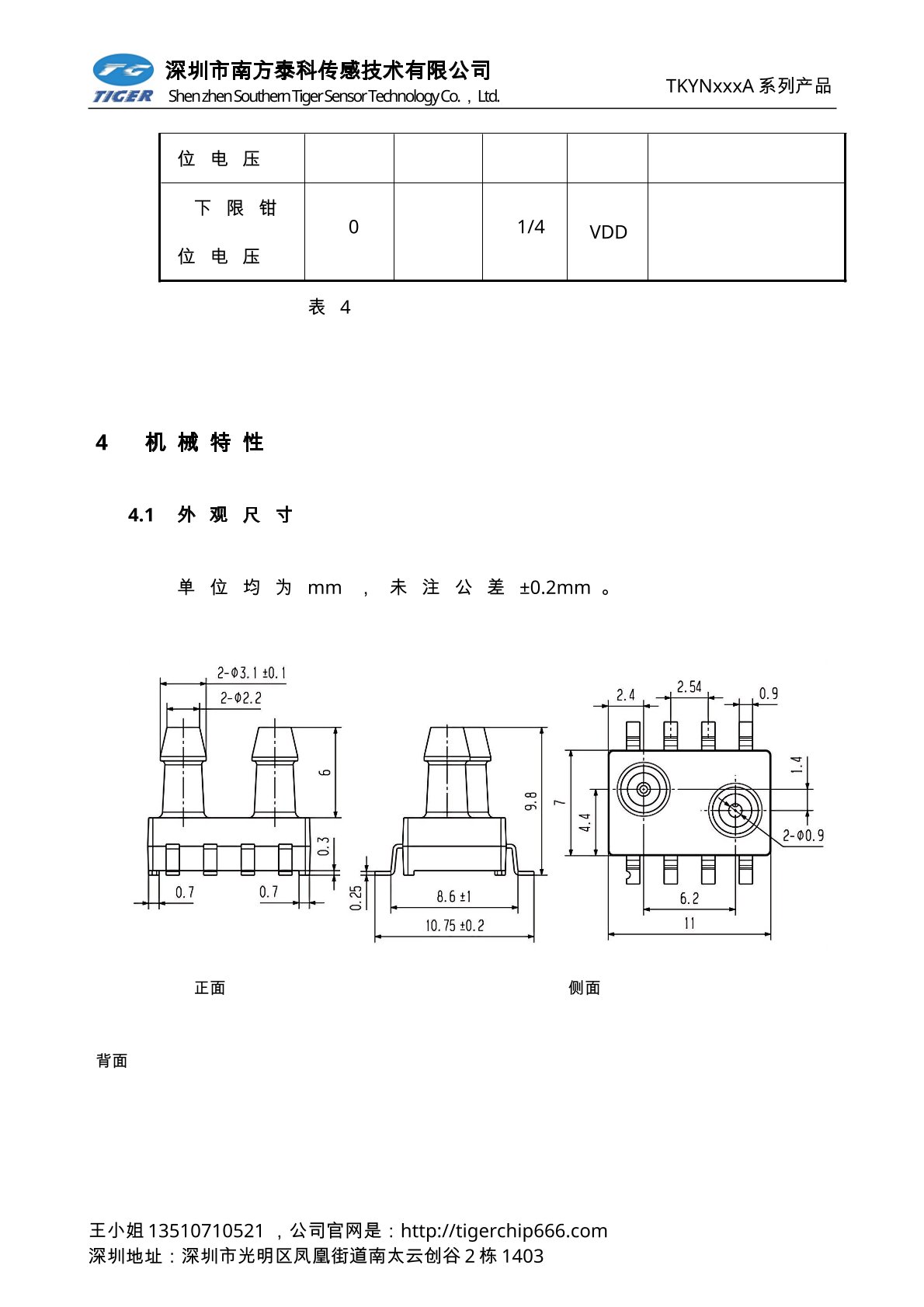 TKUNxxxA系列压力传感器为高灵敏度的标准电压输出型压力传感器芯片