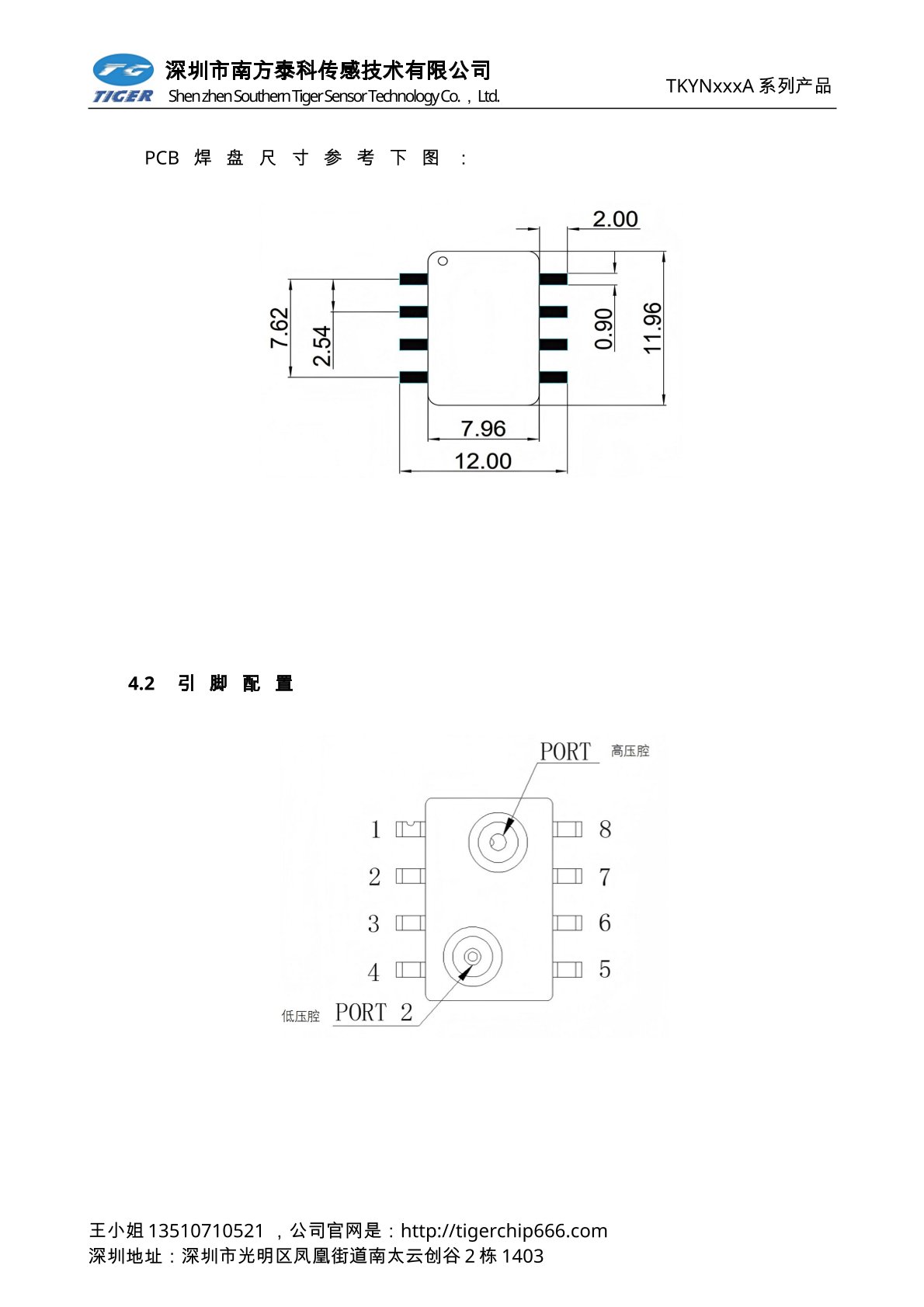 TKXN-A系列压力传感器采用SOP8封装