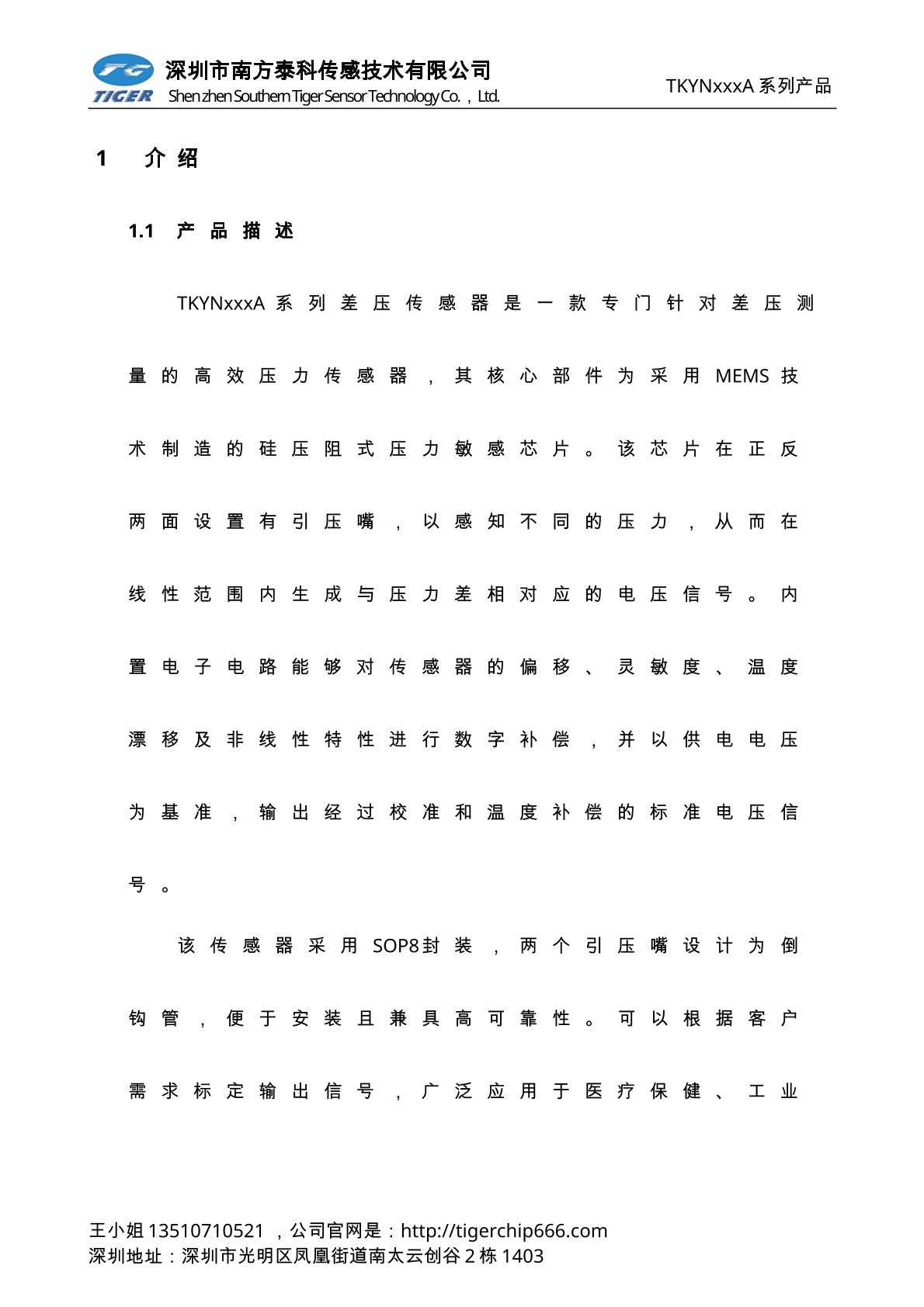 TKUNxxxD系列压力传感器为高灵敏度的智能型数字输出压力传感器芯片