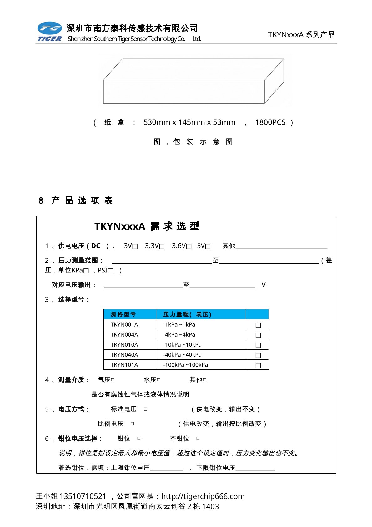 TKVNxxxD系列压力传感器为高灵敏度的智能型数字输出压力传感器芯片