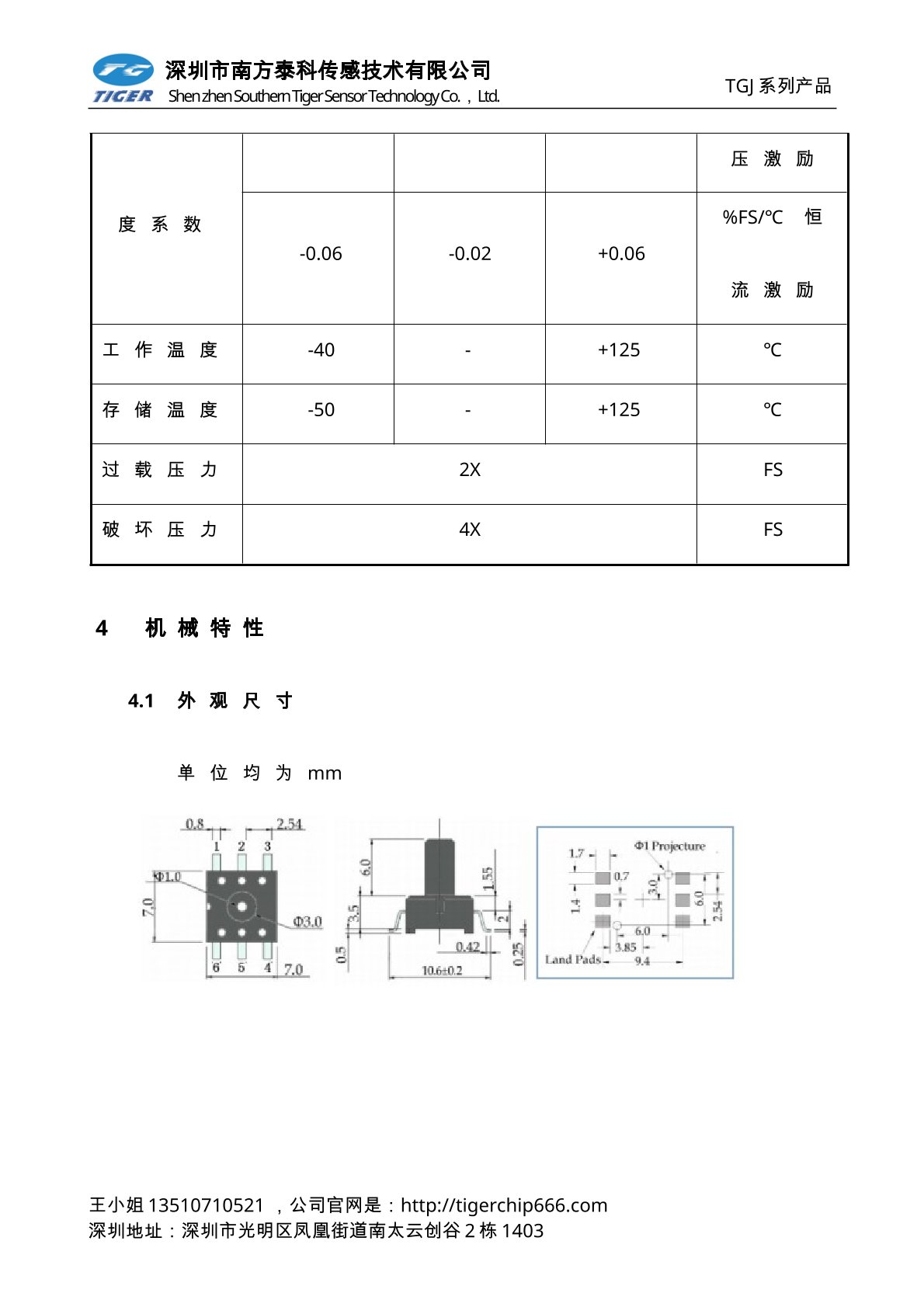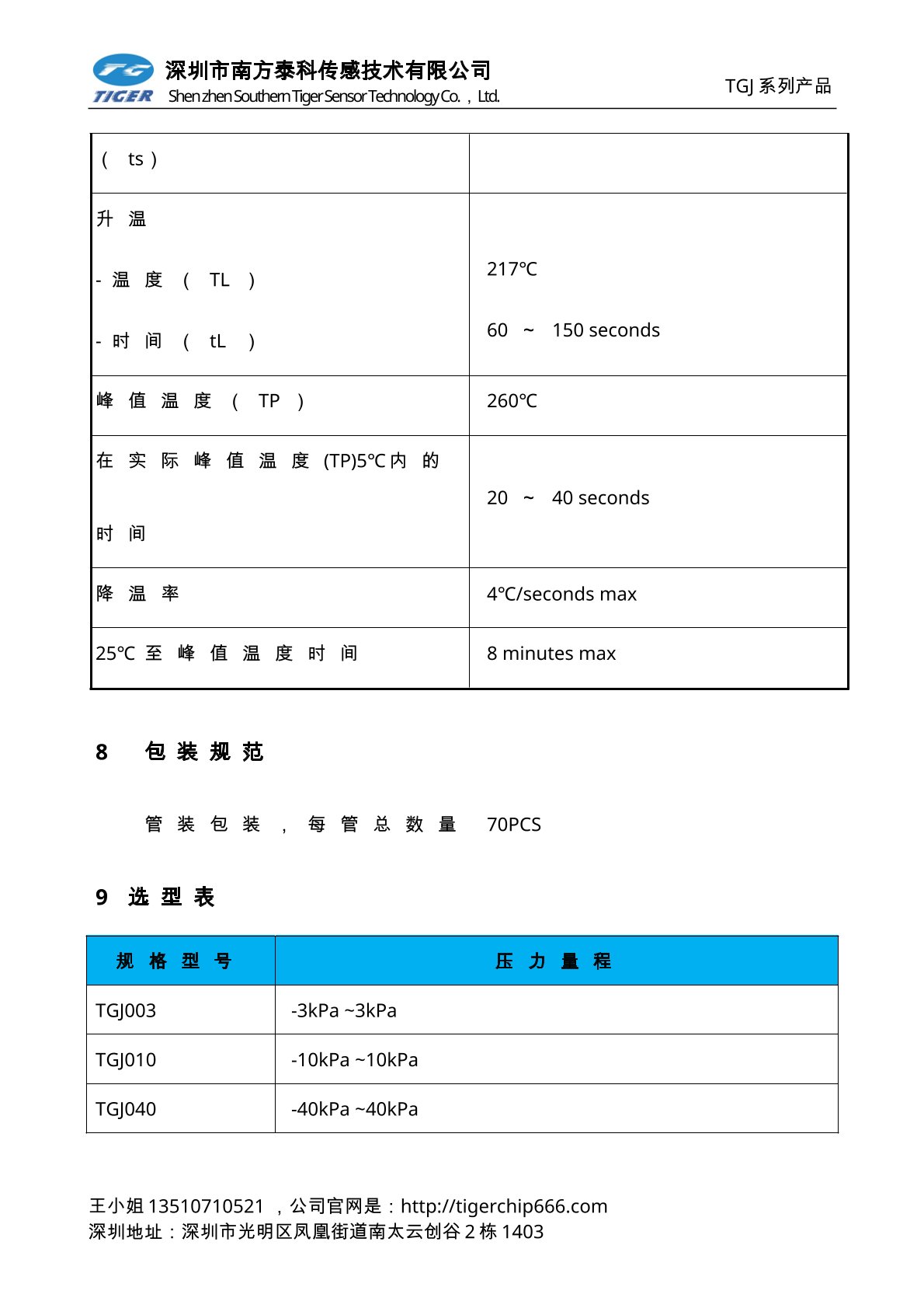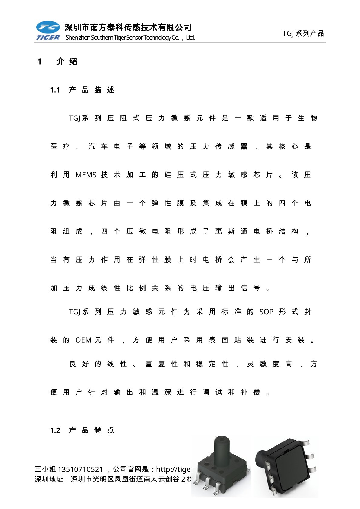 TGJ系列压力敏感元件为采用标准的SOP形式封装的OEM元件,方便用户采用表面贴装进行安装。