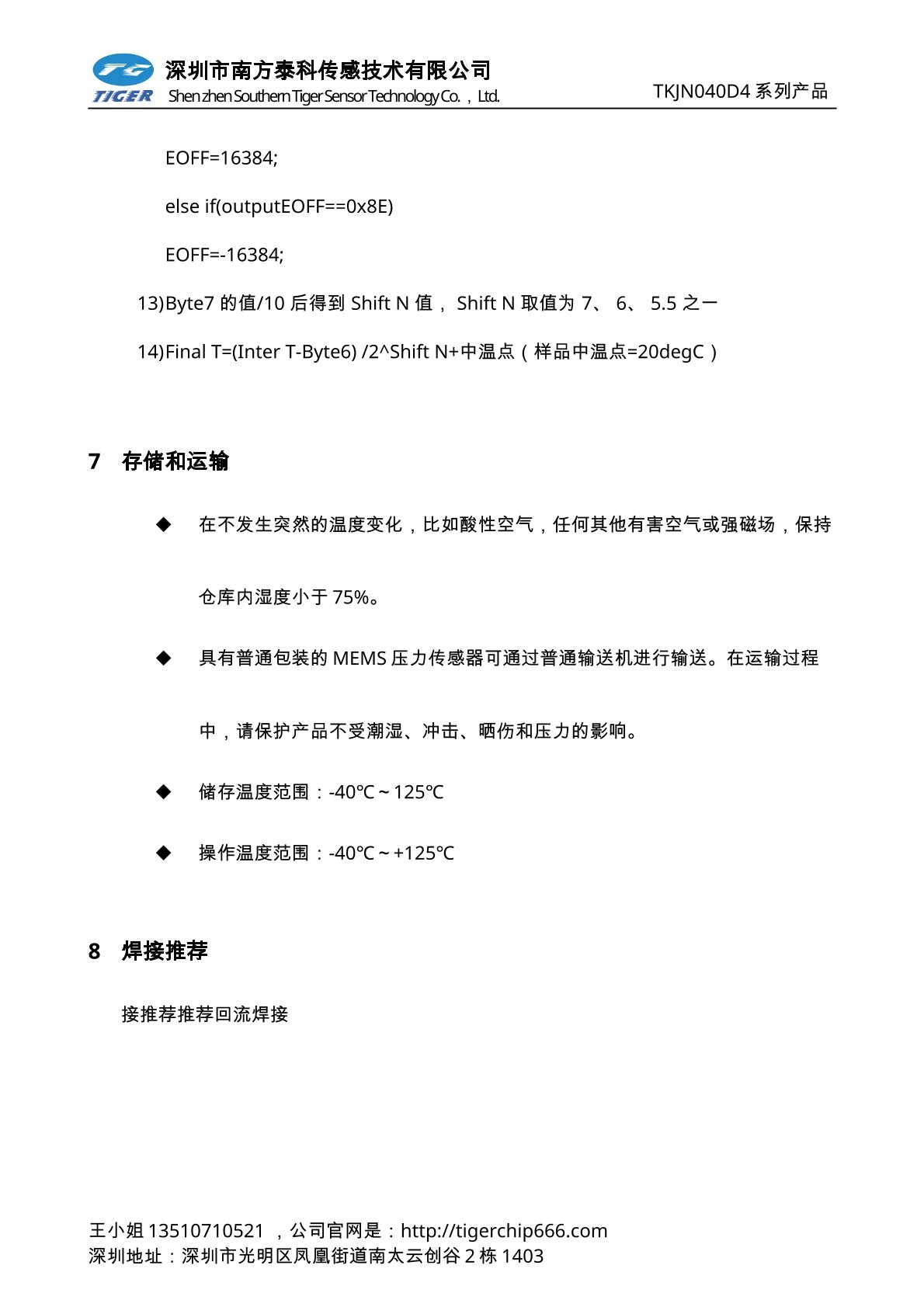 TKVNxxxD系列压力传感器为高灵敏度的智能型数字输出压力传感器芯片