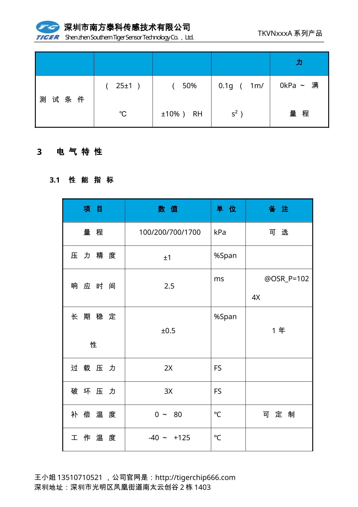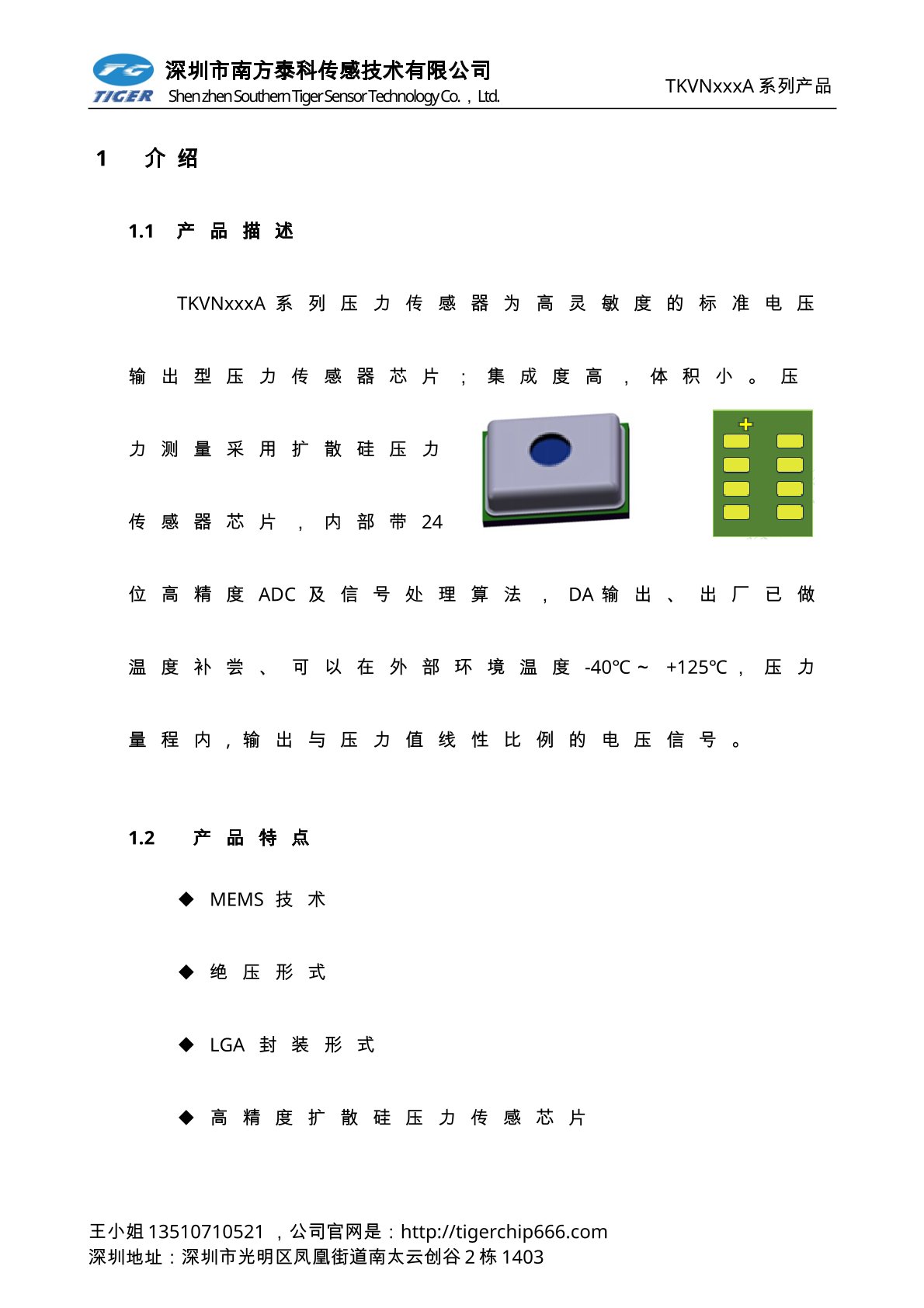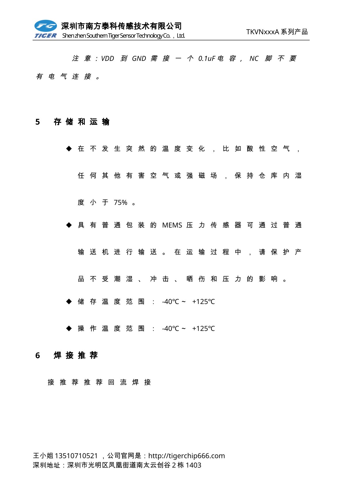 TKVNxxxA系列压力传感器为高灵敏度的标准电压输出型压力传感器芯片