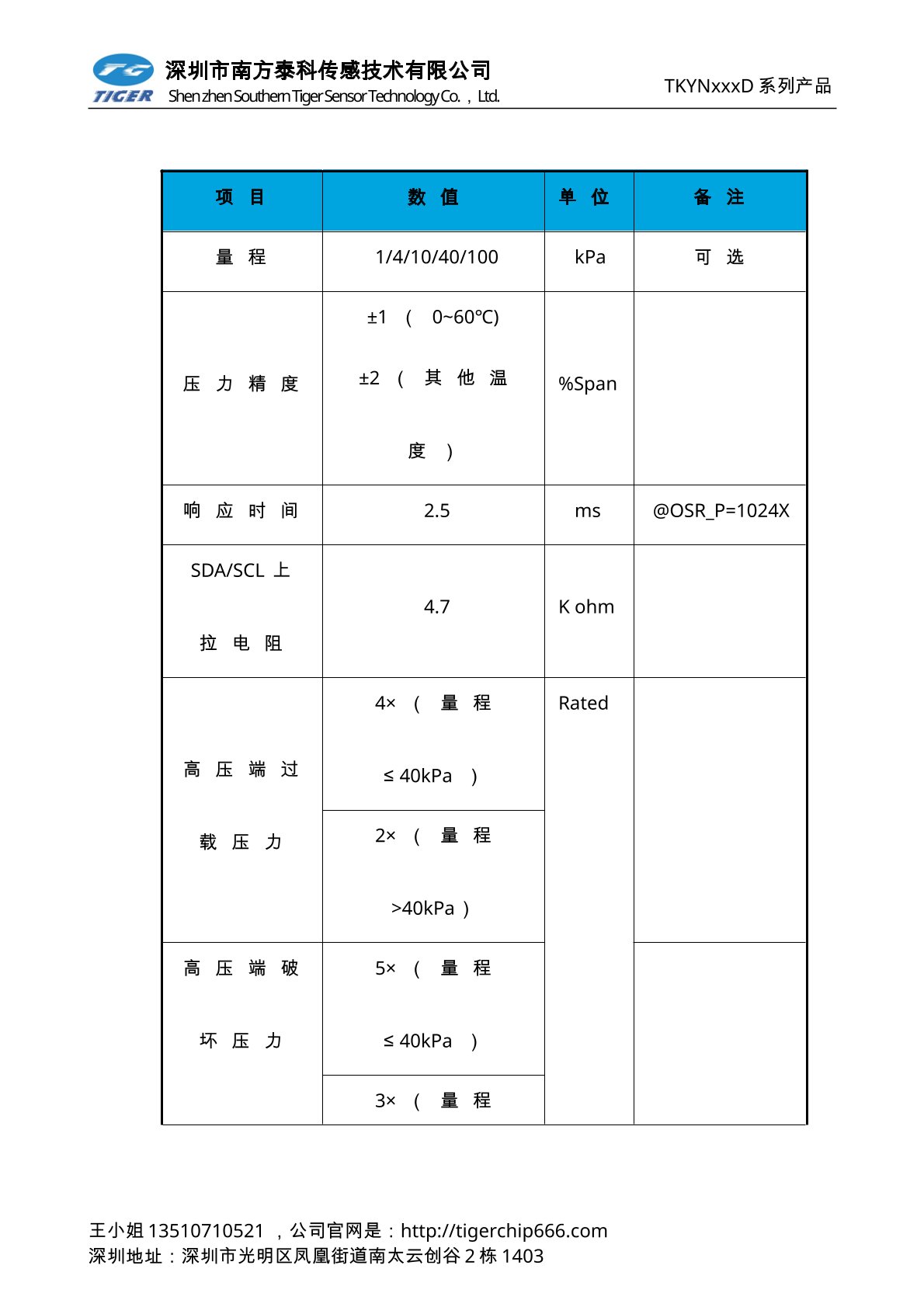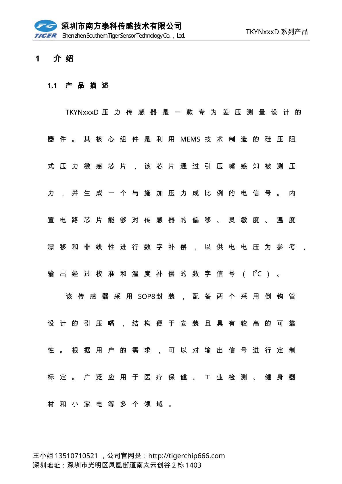 TKUNxxxD系列压力传感器为高灵敏度的智能型数字输出压力传感器芯片
