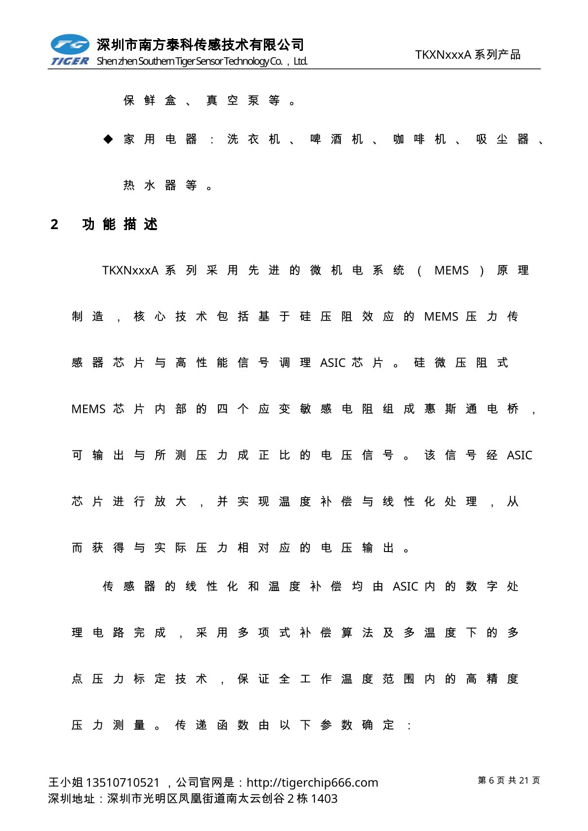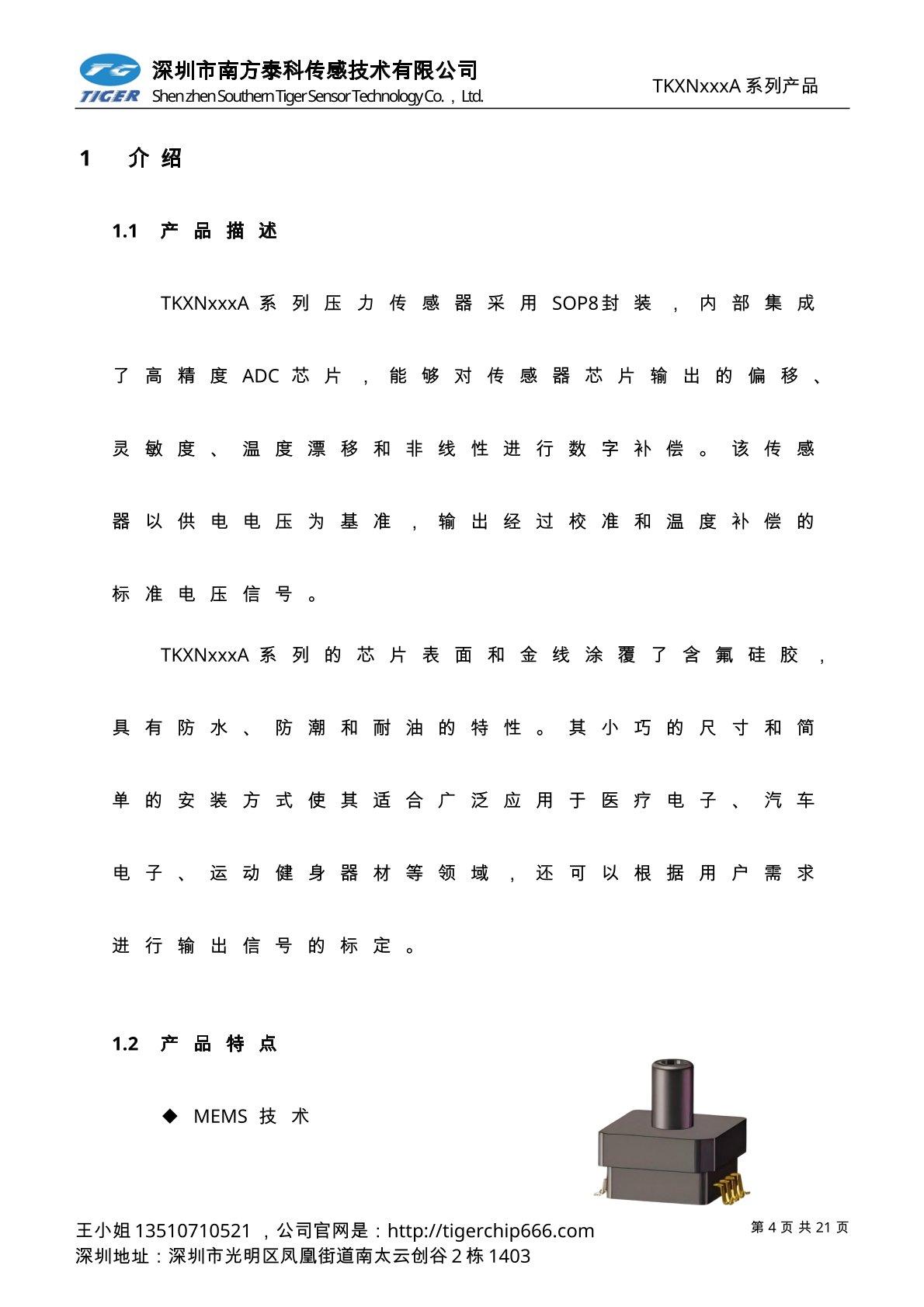 TKVNxxxD系列压力传感器为高灵敏度的智能型数字输出压力传感器芯片
