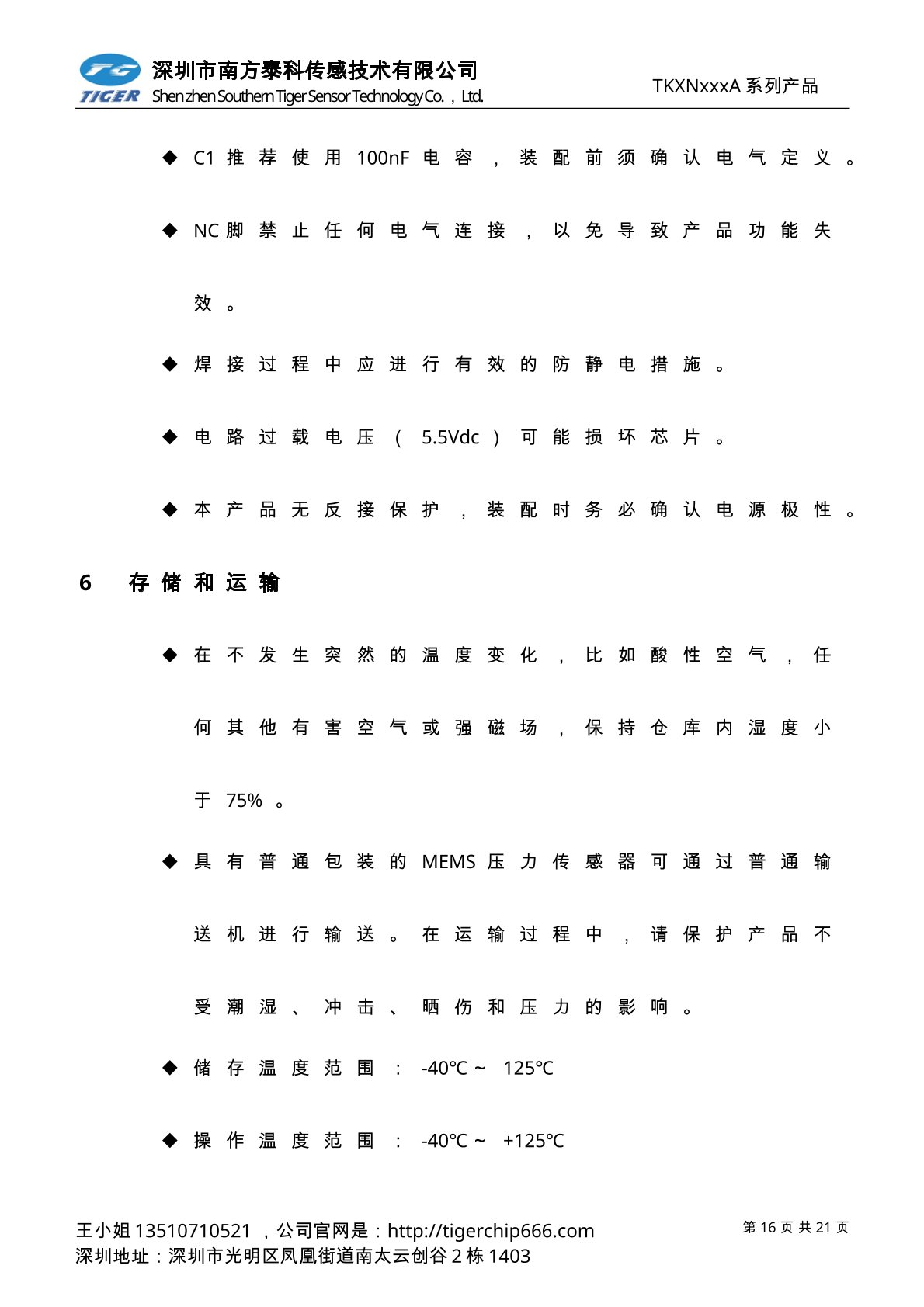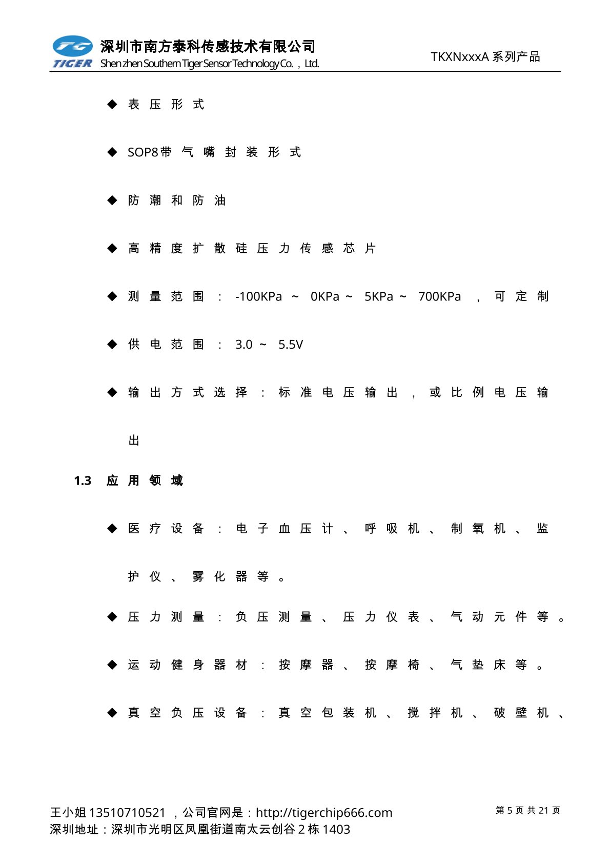 TKVNxxxA系列压力传感器为高灵敏度的标准电压输出型压力传感器芯片