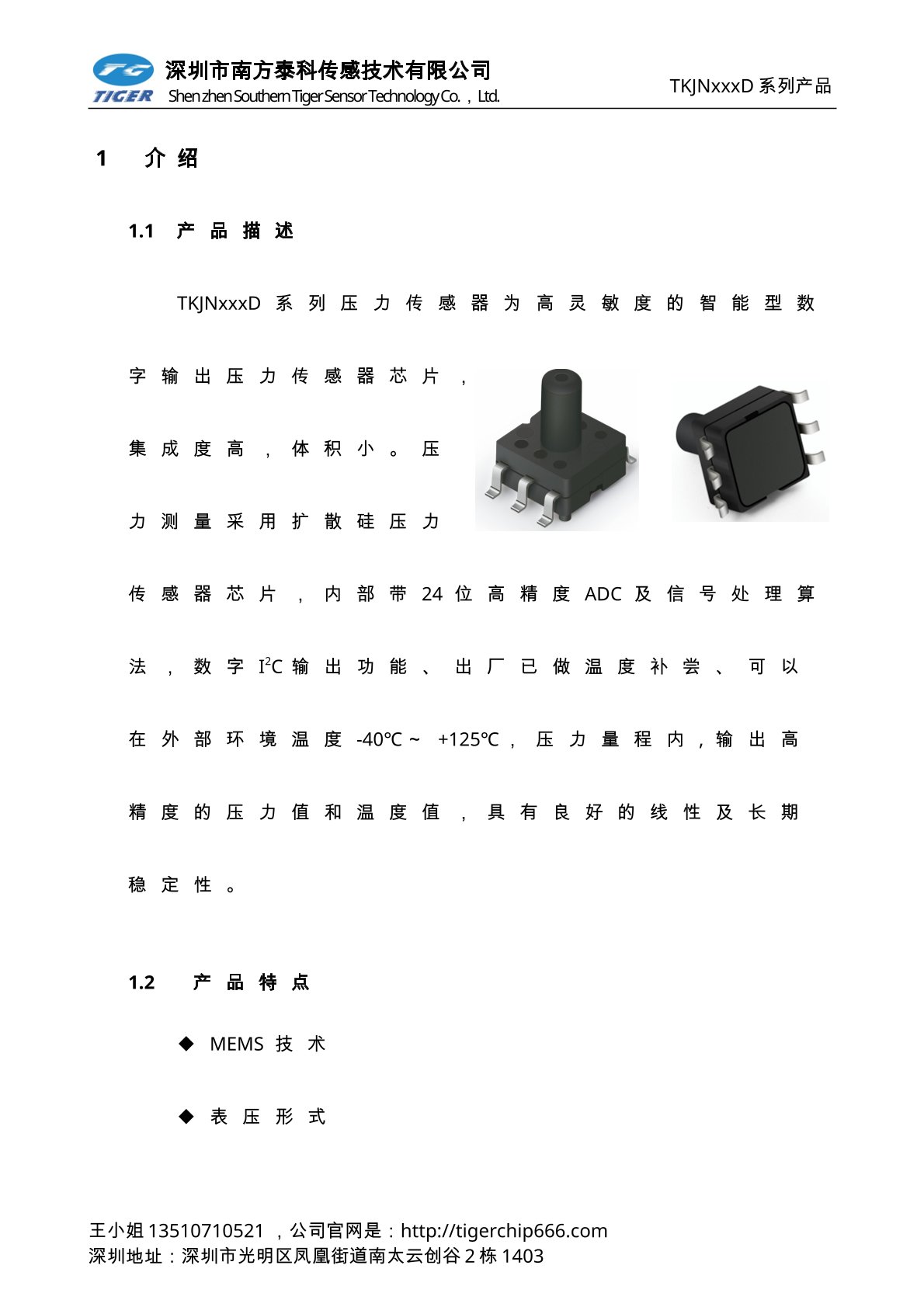 TKUNxxxD系列压力传感器为高灵敏度的智能型数字输出压力传感器芯片