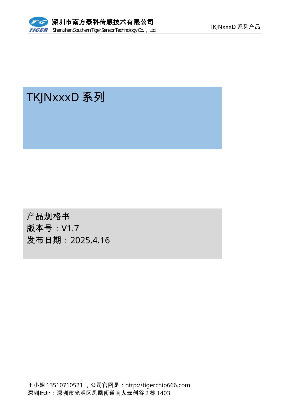 TKVNxxxD系列压力传感器为高灵敏度的智能型数字输出压力传感器芯片