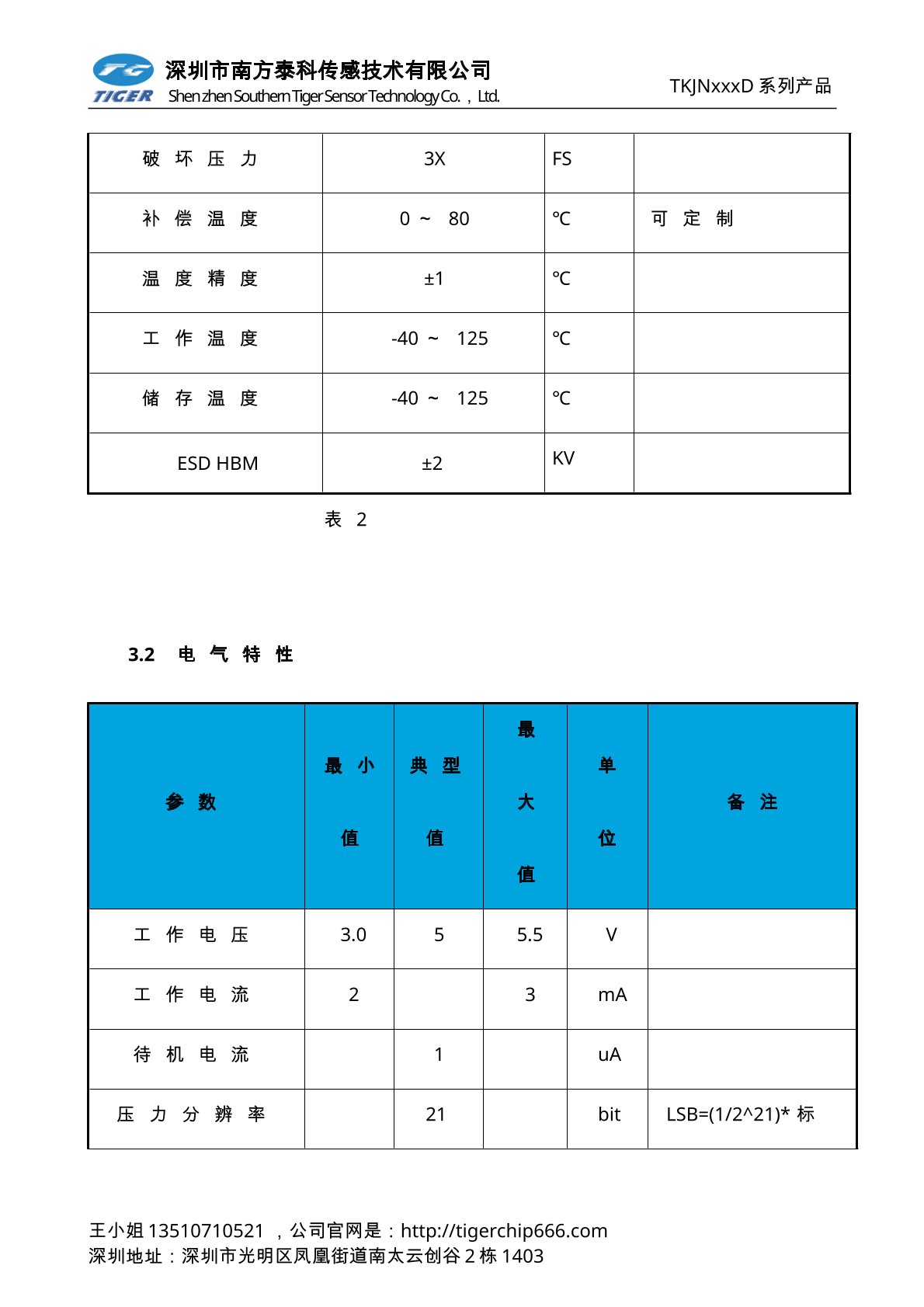 TKJNxxxD系列压力传感器为高灵敏度的智能型数字输出压力传感器芯片